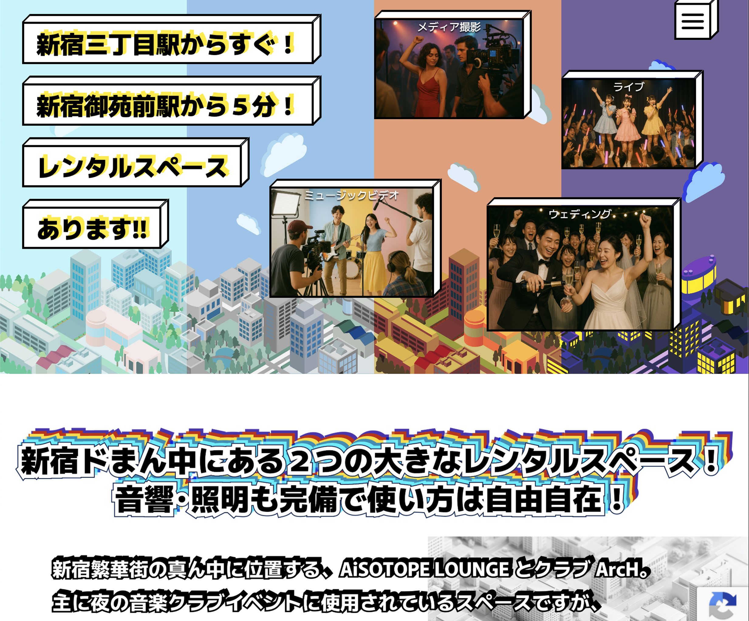 -イベントスペースの訴求ページ-ナイトクラブ2会場の多用途利用の訴求のためのランディングページ